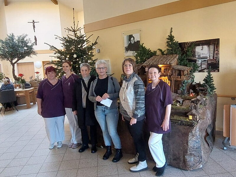 Mechernich - 220 Euro aus dem Glühwein-Verkauf beim Aufstellen des Weihnachtsbaumes und vier überdimensionierter hölzerner Kerzenskulpturen aus der Werkstatt von Peter Linden auf dem Dorfplatz am Georgs-Kapellchen überreichten jetzt Marita Mendel und Rita Baumann von der Dorfgemeinschaft Kallmuth sowie Ortsbürgermeister Robert Ohlerth an die Belegschaft des Mechernicher Sterbehospizes „Stella Maris“ des Ordo Communionis in Christo.