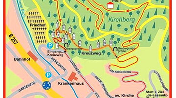 Der Kreuzweg wurde zwischen 1861 und 1863 im neugotischen Stil errichtet. Die Flora und Fauna der parkähnlichen Anlage bietet auch Naturfreunden ein lohnendes Ziel. Die Länge der Wegstrecke beträgt rund 700 Meter, der Höhenunterschied 75 Meter. Das Ganze dauert circa eine Stunde.