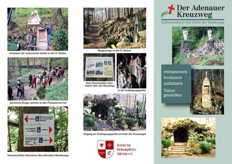 Seit seiner Gründung hat es sich der „Verein für Heimatpflege Adenau e.V.“ zur Aufgabe gemacht, sich um die Erhaltung, Pflege und Renovierung des Kreuzweges zu kümmern. So restaurierte er in den vergangenen Jahren alle Stationen aufwändig. Mehr Infos rund um den Kreuzweg gibt´s unter www.heimatverein-adenau.de
