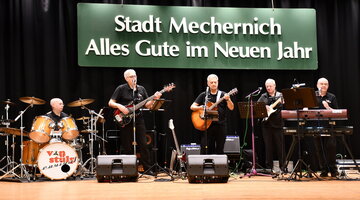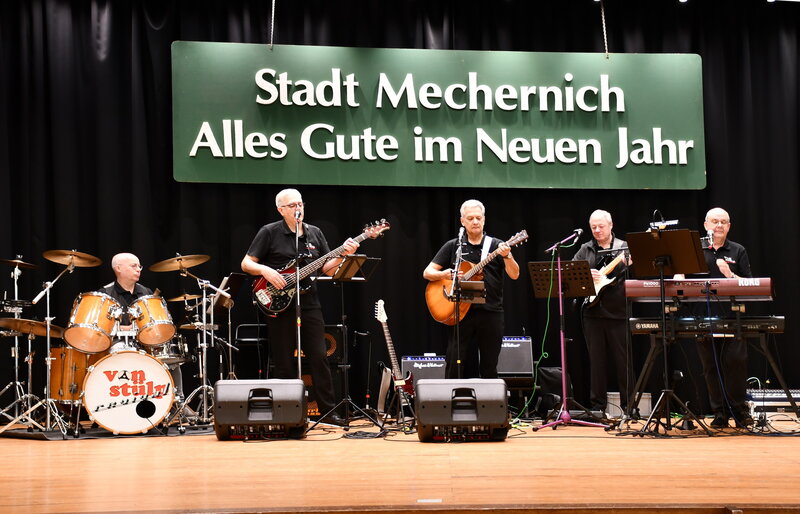 Vor und nach der Neujahrsansprache haute „Schmetze Willi“, Gründer und Keyboarder der Mechernicher Kultband „Von Stülp Revival“, mit seinen „Männ“ Rainer Pütz, Eric Guicherit, Frank Weiermann und Günther Rau in die Tasten. Die Jugendgruppe der GdG St. Barbara übernahm die Bewirtung der Gäste. Als eloquenter Moderator brachte der Redakteur und Agenturchef Roland Larmann („ProfiPress“) seine Talkgäste zum Reden.