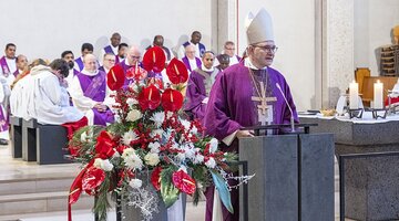 Den feierlichen Auftakt bildete eine heilige Messe in der Hauskapelle der Communio in Mechernich. Generalsuperior Pfarrer Jaison Thazhathil begrüßte die zahlreichen Gäste und erinnerte in seiner Ansprache an die Bedeutung dieses Tages. „Heute haben wir zwei besondere Anlässe: Erstens, wir feiern den Geburtstag von Mutter Marie Therese, der Gründerin der Communio in Christo. Und da Mutter Marie Therese auf den Namen Josephina getauft wurde, feiern wir heute auch ihren Namenstag und ehren sie als treue und gehorsame Dienerin Gottes, wie es auch der heilige Josef, ihr Namenspatron, war“, sagte der Generalsuperior, der zudem betonte. „Wir gedenken allen leidenden Menschen und bitten Gott um die Kraft, ihr Leid in das heilbringende Leiden Christi zu verwandeln.“