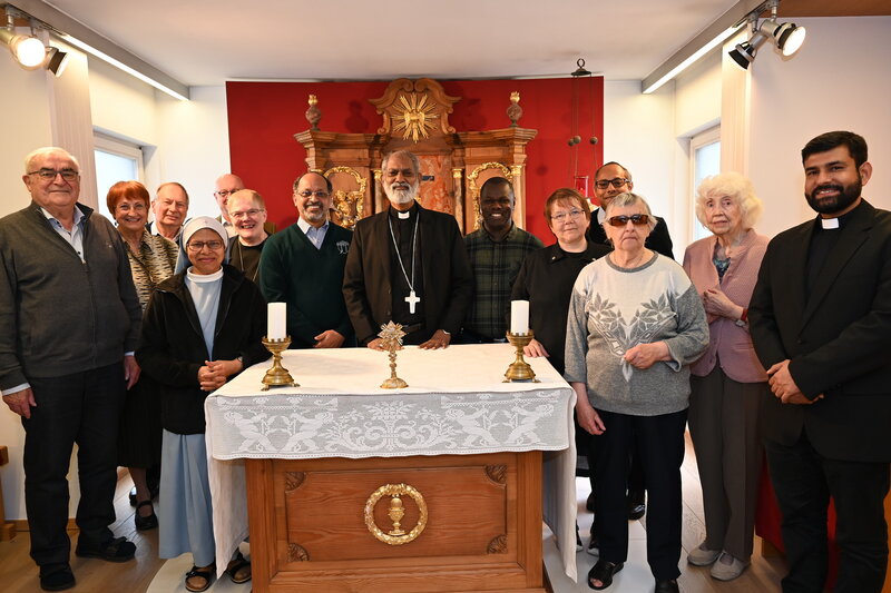 Begleitet wurde der Bischof, der die Familie des Mechernicher Generalsuperiors Father Jaison Thazhathil seit Kindesbeinen kennt, von seinem Neffen Father Jobin Joy, der an der Hochschule der Pallottiner in Vallendar bei Koblenz studiert. Alle hatten sich jetzt bei den Reunionsfeierlichkeiten der Syro-malankarisch-katholischen Kirche in Frankfurt wiedergetroffen. Dabei lud Generalsuperior Father Jaison Thazhathil den Bischof zu einem Besuch nach Mechernich ein.
