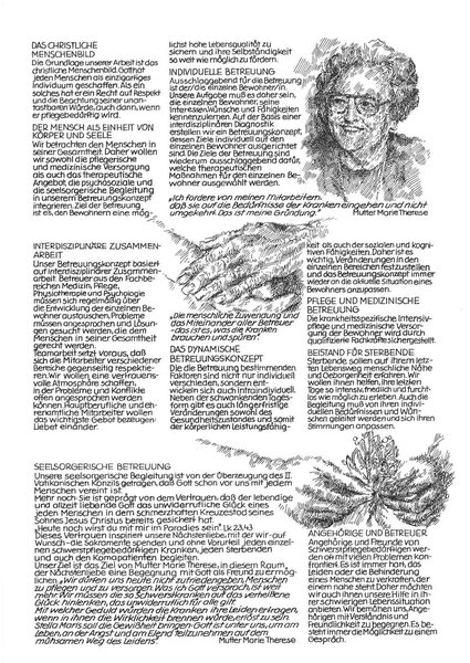 Auch bei der Communio in Christo in Mechernich fand sie einen Ort der künstlerischen und spirituellen Heimat. „Sie durfte ganze Nächte im Hospiz verbringen, bei sterbenden Menschen zeichnen“, erinnert sich Schwester Lidwina. Unterstützt wurde sie von Spiritual Hermann Walch und Generalsuperior Karl-Heinz Haus. Auch im Kloster Marienborn zeichnete sie mit Zustimmung psychiatrische Patienten.