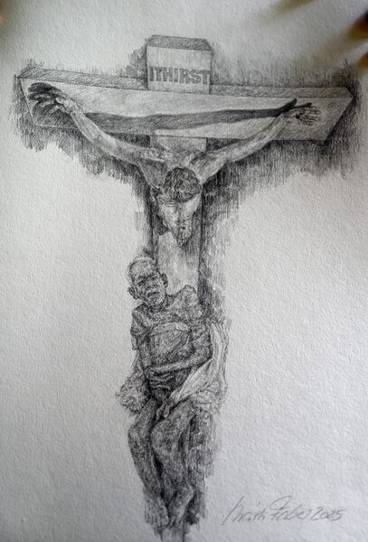 „Sie zeigen mir mit ihren Augen, ob ich sie zeichnen darf. Es ist für mich eine Ehre“, sagte sie im Interview mit Diakon und Redakteur Manfred Lang und seiner journalistischen Kollegin Bruni Mahlberg-Gräper. Ihre Zeichnungen sind von erschütternder Tiefe und spiritueller Kraft. „In manchen Gesichtern sehe ich das leidende Antlitz Christi.“