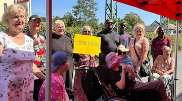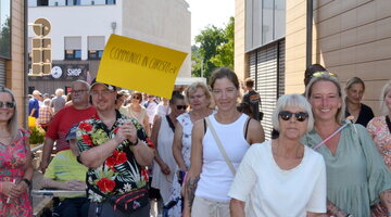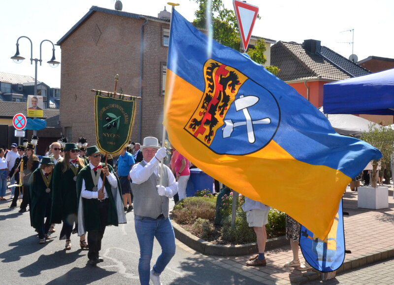 Schon im Umzug wurde getanzt, gelacht und gefeiert, bevor es dann in Richtung Innenstadt losging. Mit dabei, neben Verwaltungsspitze und Landrat Markus Ramers, Fahnenschwenker René Zander und Gäste aus der Mechernicher Partnerstadt Nyons sowie vom Freundeskreis Mechernich-Nyons e.V.