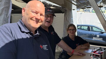 Neben einem Infostand, zahlreichen Einsatzfahrzeugen und einer Hüpfburg, waren sie aber auch für die Sicherheit der Besucher zuständig. Insgesamt waren 17 tüchtige Rotkreuzler aus Mechernich und Weilerswist um Teamleiter Sascha Suijkerland in Bereitschaft. Ihre zahlreichen Fahrzeuge, darunter auch Lastwagen, hatten die Erben Henry Dunants als Keil in der Weierstraße geparkt, um potenzielle Amokfahrer zu stoppen. Andere Zugänge zu den Orten, an denen Zehntausende feierten, waren mit Bauhoflastern, Baggern und schweren Traktoren zugestellt worden.
