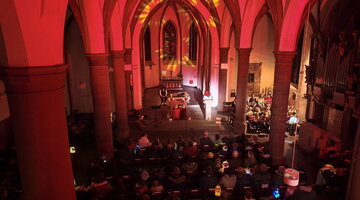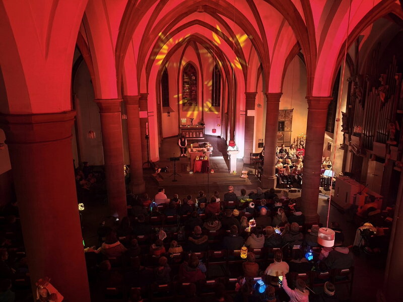 Das Projekt #StLaurentius.digital befindet sich technisch auf bemerkenswertem Niveau. Dank jahrelanger Weiterentwicklung durch das Ehrenamtsteam um Sebastian Pönsgen verfügt die Kirche über hochwertige Streamingtechnik, moderne Infrastruktur und clevere digitale Lösungen. Neben Kamera- und Übertragungstechnik wurden demontierbare Befestigungen für eine große Leinwand installiert – sie kommt bei Vorträgen, Kinderaktionen und in der Adventszeit zum Einsatz. Bilder im Altarraum, Liedtexte bei Jugendgottesdiensten oder Laternenprojektionen zu St. Martin können darauf projeziert werden.