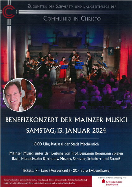 Die Pflegebedürftigen und die Langzeitpflegeeinrichtung Communio in Christo seien auf öffentliche Wahrnehmung und Unterstützung angewiesen, so Norbert Arnold. Ihren Teil für Anerkennung und Lobby des Ordo Communionis in Christo und seines Sozialwerks leisten die Mainzer Musici und die zum Teil regelmäßigen Besucher des Mechernicher Dreikönigskonzertes seit 2018.