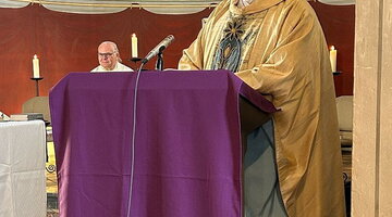 Er verglich die Kallmuther Pieta mit der Skulptur eines Bildhauers im Grödnertal, der den biblischen Sachverhalt künstlerisch gespiegelt hat, als er Maria auf dem Schoß des sterbenden Jesus darstellte. Ulrich Clancett schlug einen Bogen: „Die Statistikzahlen deuten auf den Untergang der Kirche hin, aber der sterbende Jesus trägt Hoffnung auf Auferstehung und gibt Kraft.“ Jeder Pilger sei aufgerufen, diese Hoffnung in sich zu tragen und weiterzugeben, wenn er die Kallmuther Wallfahrtskirche verlasse und in den sonnigen Tag gehe.