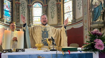 Schlütter und Diakon Klaus Hövel eröffneten vergangenen Freitag in der Pfarr- und Wallfahrtskirche St. Georg in Kallmuth einen bewegenden Pilgertag, der dieses Jahr unter dem Motto stand „Maria, unsere Hoffnung“. „Eine Hoffnung die uns sagt, dass da ein Gott ist und dass dieser Gott mit uns geht“, so Thomas Schlütter, der Leitende Pfarrer des Pastoralen Raumes Schleiden/Hellenthal: „Er ist bei uns auf allen Pilgerwegen unseres Lebens.“