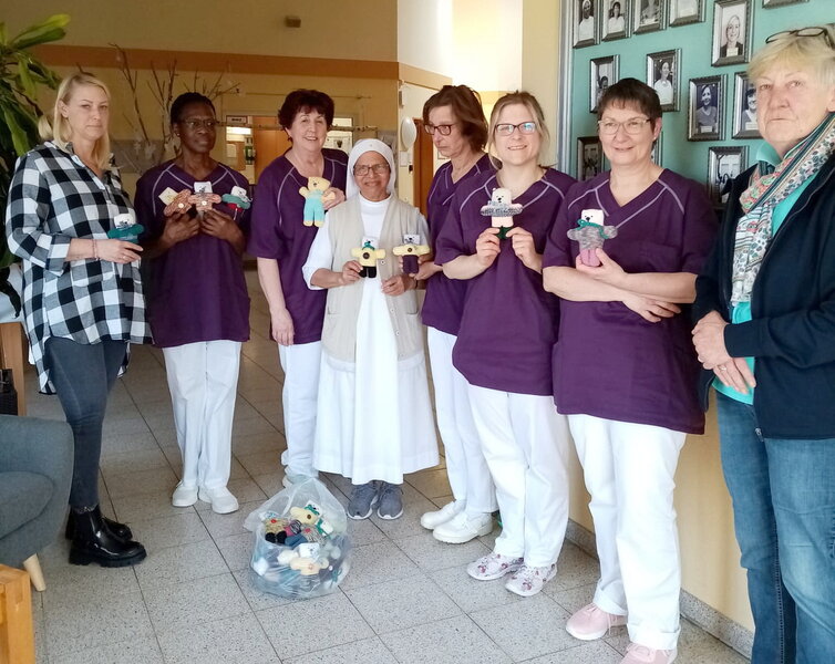 Mechernich/Euskirchen – „Wir haben uns im ganzen Kollegium total über diese schöne Spende gefreut. Auch bei den Bewohnerinnen und Bewohnern wurde diese klasse Idee gut angenommen“, freut sich Verena Izzo, Pflegedienstleiterin im Mechernicher Hospiz Stella Maris des Sozialwerks Communio in Christo e.V.. 50 „Tröstebärchen“ hatte das Hospiz von einem kleinen Strickkreis in Euskirchen erhalten.