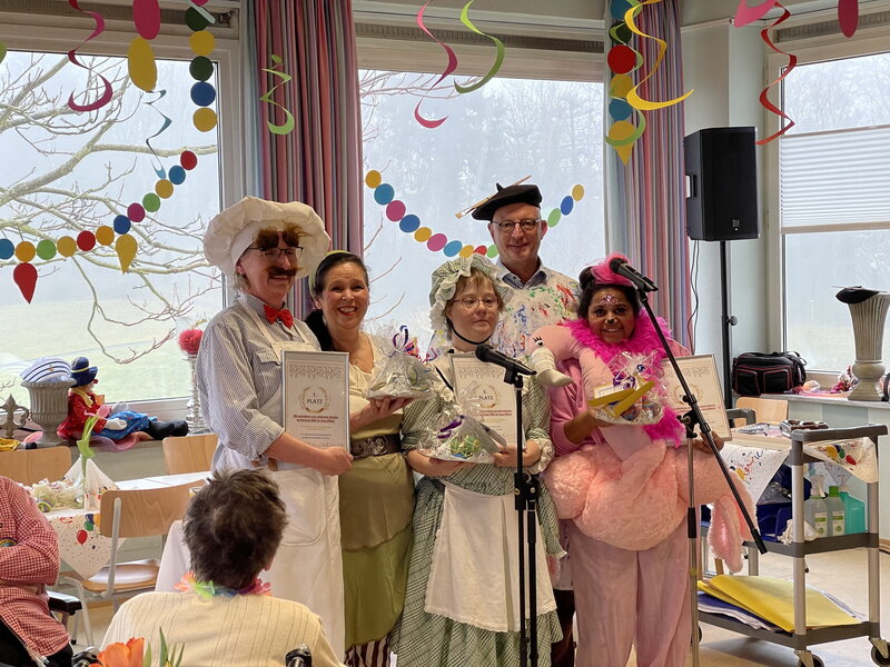 Den zweiten Platz konnte sich Theresa Caspers mit ihrem „Mansell-Kostüm“ sichern – samt Kino-Gutschein. Julie Müller konnte die Jury mit ihrem Flamingo-Kostüm überzeugen, das ihr den dritten Platz samt „Überraschungsgutschein“ einbrachte. Alle drei Präsentantinnen erhielten weiterhin ein individuelles Zertifikat. Beurteilt wurden die Kostüme von einer Jury aus Norbert Arnold, dem Geschäftsführer des Sozialwerks und Einrichtungsleitung Sonja Plönnes.