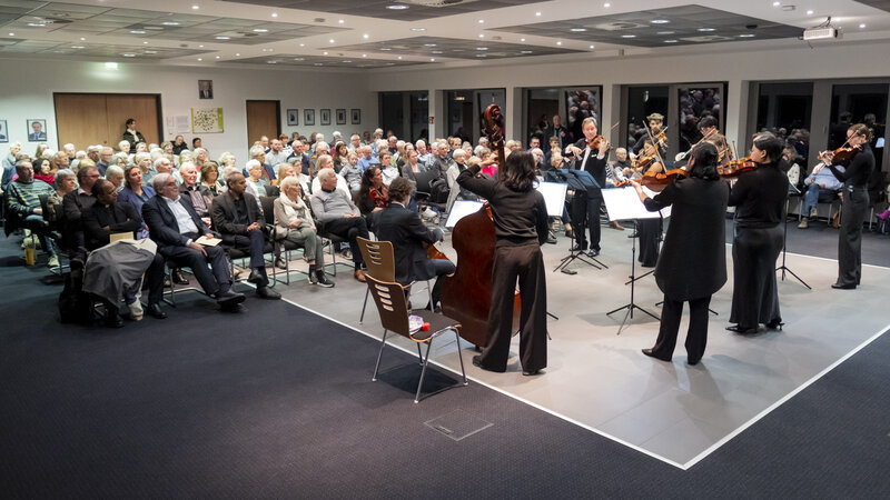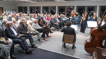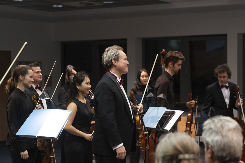Abschließend wünschte sie allen einen wunderbaren Abend mit den Mainzer Musici unter der Leitung von Prof. Benjamin Bergmann. „Möge die Musik uns heute Abend auf eine ganz besondere Weise berühren und verbinden“, sagte Sonja Plönnes und dieser Wunsch sollte nicht unerfüllt bleiben.