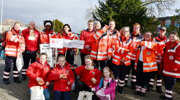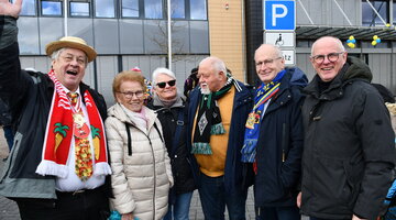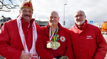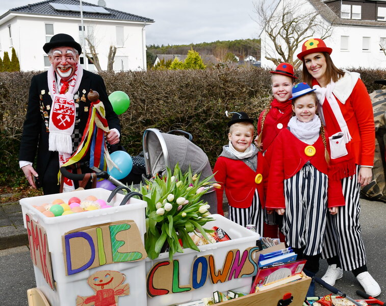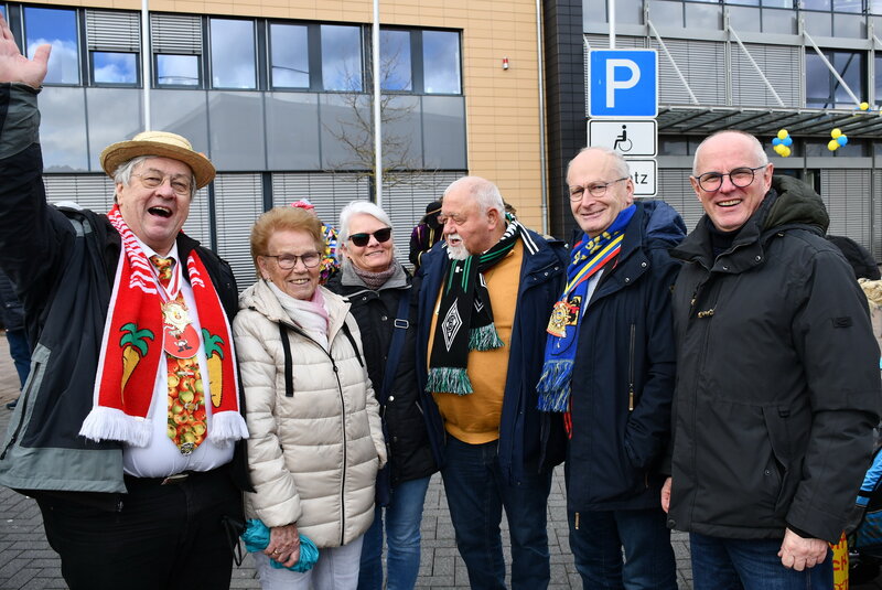 Kinder und Jugendliche verteilten Tulpen und „Strüßjer“ an die Bewohner des Kreuser-Stiftes, die man trotz dräuendem Wolkenhimmel im jecke Sunnesching an die Straße geschoben hatte. Auch die Bewohner der Flüchtlingsunterkunft gegenüber klatschten begeistert in die Hände und filmten mit ihren Handys das in ihren Augen vermutlich exotisch anmutende Treiben auf der Straße.