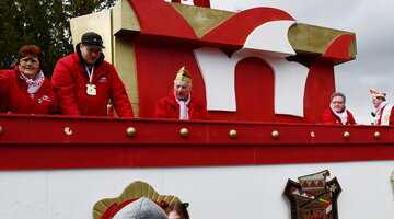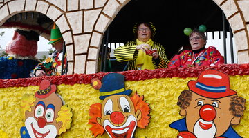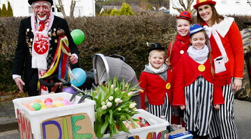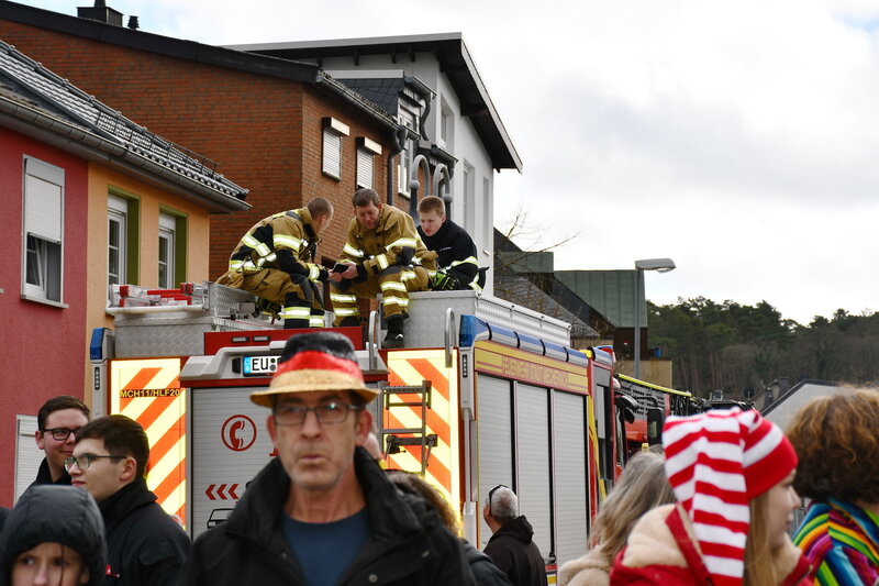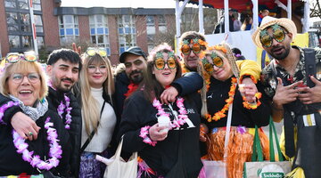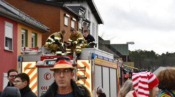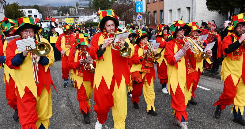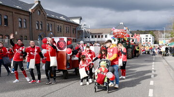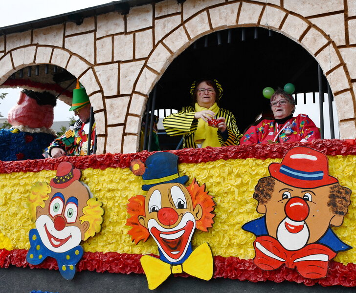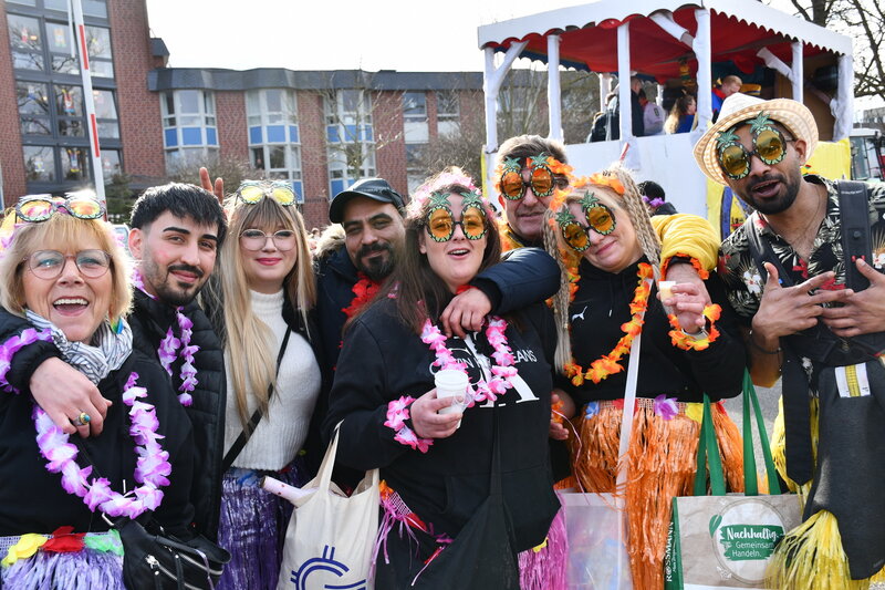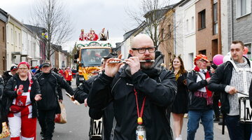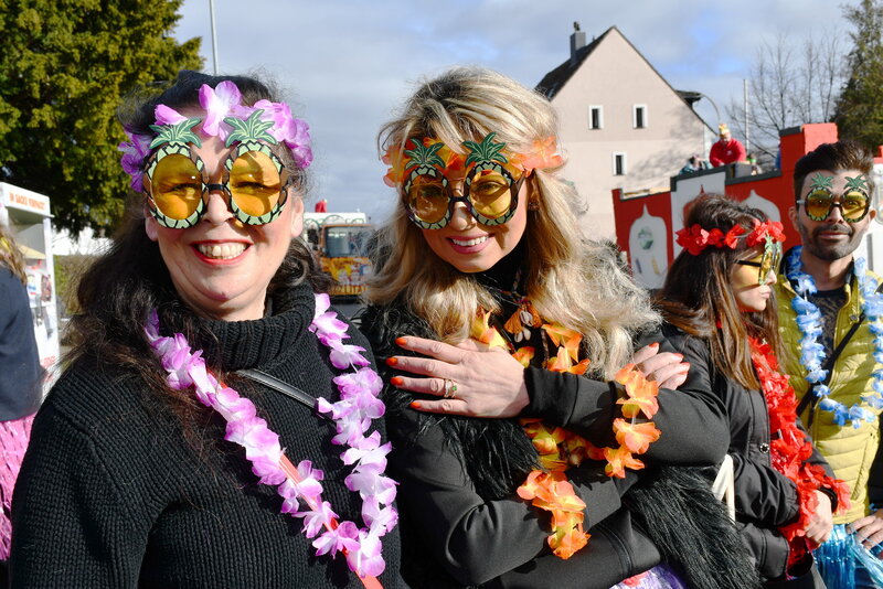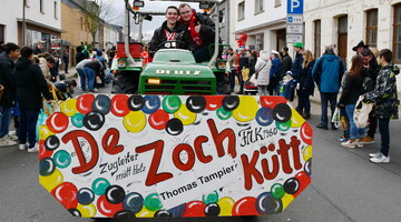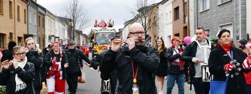 Noch länger mit von der Partie im Mechernicher Zug, nämlich seit den Anfängen in den 60er Jahren, sind die „Clowns“. Ansgar Richartz war schon an der Seite seines Vaters Bernd, dem „Clown met dämm Blöömche“, als Kind mit von der Partie. Auch die KG aus dem benachbarten Strempt zieht seit Menschengedenken mit durch Mechernich, ebenso die Communio in Christo, die diesmal mit 120 Teilnehmern eine sich bewegende „Beachparty“ darstellte.