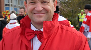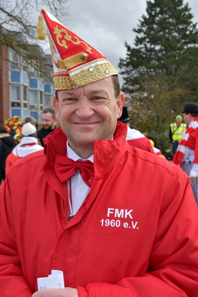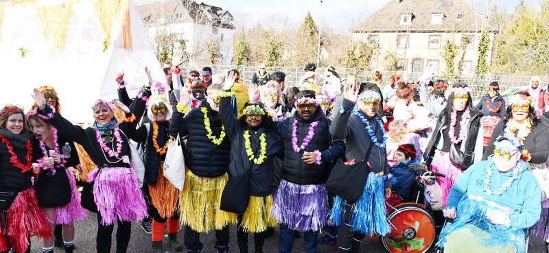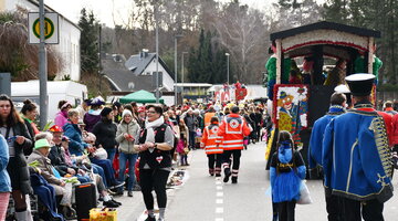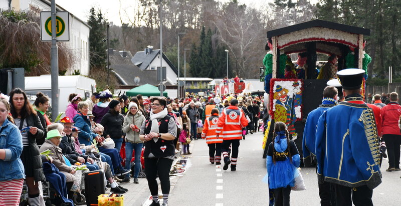 Zugleiter Thomas Tampier strahlte angesichts der üppigen Fülle an Zugteilnehmern, 26 Gruppen und Wagen, und Tausenden Zuschauern von einem Ohrläppchen bis zum andern, sein Zugaufsteller Kevin Hembach hatte keine Probleme die Gliedmaßen des närrischen Lindwurms in die richtige Reihenfolge zu bringen und (fast) pünktlich gegen 14.11 Uhr in Bewegung zu setzen.