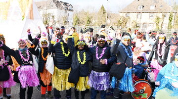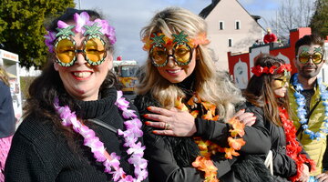 Auch Schwester Lidwina und Generalsuperior Pfarrer Jaison Thazhathil waren mit Baströckchen und Sonnenbrillen zu sehen, ebenso Sonja Plönnes, die Heimleitung, und Zarlasht Azimi vom Blankenheimer „Haus Effatta“ der Communio sowie Norbert Arnold, der Geschäftsführer des Sozialwerkes. Auch zahlreiche Rollstuhlfahrer machten fröhlich mit. Inklusion ist im Mechernicher Karneval kein Fremdwort.
