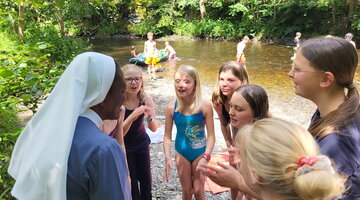 The campsites change from year to year, mostly between the Lower Rhine and the Moselle - Skarszewy, Mechernich's Polish partner town, has also been visited. Last year, the children and young people from Bleiberg camped at the ‘finger of God’, the castle ruins of Schloßtal near Dollendorf; in 2025, the team plans to pitch its tents at another site on the Rur near Dedenborn. Once again this year, the children and young people had to take on various tasks themselves. These included helping to prepare meals, setting and clearing tables, cleaning and night watch. An attempt by non-camp members to steal the self-designed camp flag - a scouting ritual - failed due to the attentiveness of the St Agnes camp members.