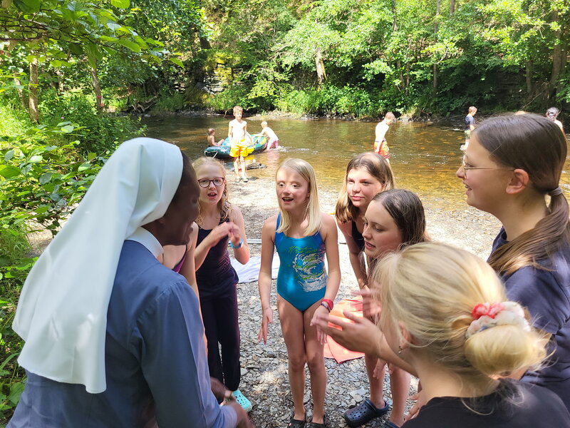 In addition to the camp leaders Holger Stürmer and Peter Heimbach, the twelve-person team of counsellors also included the kitchen ladies Simone Groß and Christine Roggendorf as well as Caroline Tesch, Steffi Meyer, Katja Linden, Melina Sporkett, Fabian Hensch, Noah Klinkhammer and Andreas Kurth and, as spiritual guide, Deacon Manfred Lang.