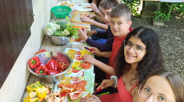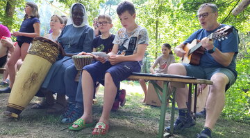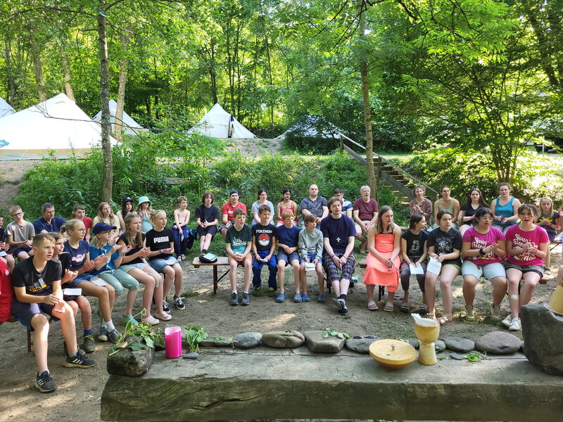 All the children and young people prepared a worship service together, focussing on the ‘type of God’, i.e. the images and concepts of God that people have of the Creator of all things and the Redeemer of mankind. Some camp participants built an altar and set up a birch cross and seating in the open air, others chose prayers and texts and recited them, while others formulated and read out intercessions or rehearsed songs and music.