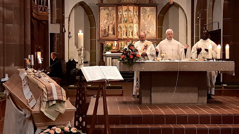 Father Patrick Mwanguhya from the Communio in Christo in Mechernich concelebrated, the sermon was preached by Deacon Manfred Lang from Mechernich, the deputy of the Communio Superior General Jaison Thazhathil. Pastor Andreas Züll and a number of other priests were also present at the service. Hermann Stepkes, a nephew of the deceased, delivered the intercessions.