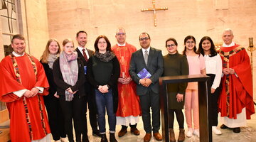 Vicar General Aymanns symbolically presented them with the Holy Scriptures for proclaiming the Word of God as well as the chalice, wine and water for distributing the Eucharist. Tenberken and Puthenveettil are part of a total of eleven candidates for the diaconate from the dioceses of Aachen (2), Essen (3) and Cologne (6) and will undergo four years of theological and pastoral studies in preparation for the ordination planned for November 2028.