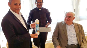 The Dutch guests were received in the Ordo conference room before a festive lunch was served in the refectory with Superior General Jaison Thazhathil, Fr Ammann and the entire community. Even here there was a lively exchange of ideas. Marie-Thérèse Dijkstra then gave a guided tour of the corridors, the chapel and Mother Marie Therese's room, which has been preserved in its original state to this day. Sonja Plönnes, Nursing manager of the "Sozialwerk Communio in Christo e.V.", then took the helm and offered a "detailed, sensitive and professional tour" of the neighbouring long-term care facility and the Stella Maris hospice. Ed van der Ouderaa: "We quickly realised how modern the community concept invented by Mother Marie Therese actually is by today's standards. Wonderful!"