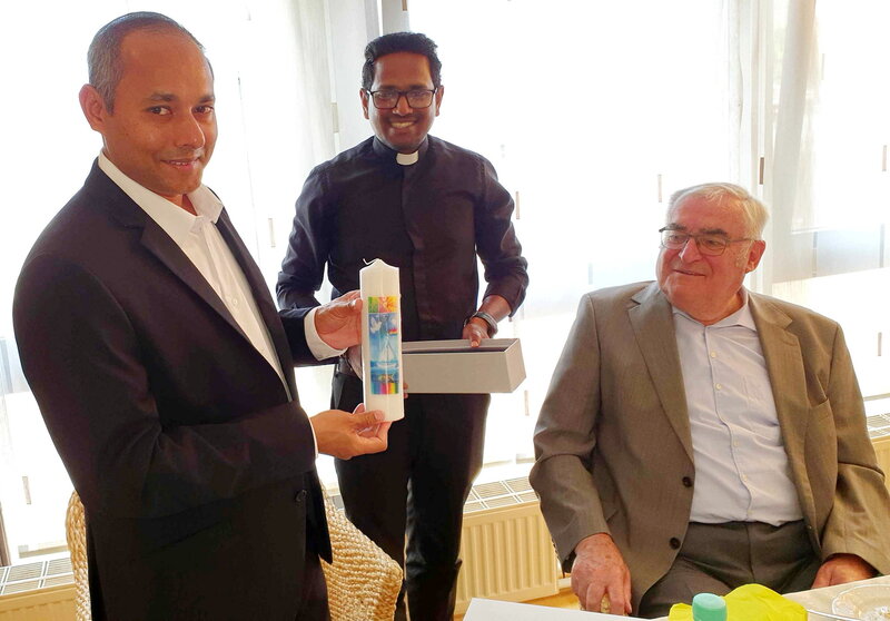 Afterwards, everyone sat together over coffee and cake in the recreation room. Here, Father Ammann explained in detail the problems that the Ordo Communionis in Christo had for a long time regarding recognition under canon law and how the solution was finally found in the form of the "consociatio christifidelium privata" in 2018. Other topics included the synodal path and the differences in work between Germany and the Netherlands. Here, too, there was lively dialogue and many questions were asked. Sister Lidwina was unfortunately ill that day. Nevertheless, they were pleased about the visit initiated by her and the opportunity to confirm the "faith-inspired relationship between the Communio in Christo and the "Parochie Johannes de Doper zu Oud-Valkenburg".