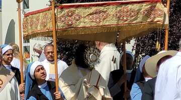 Community procession on Corpus Christi from the chapel of the Communio in Christo to the parish church of St John the…